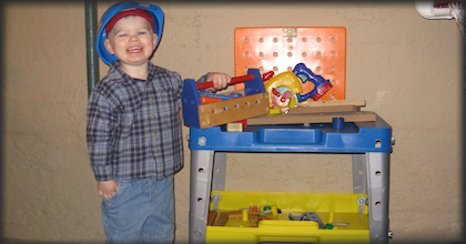 I was humbled. The Lord said, “O ye of little faith. I gave you the plastic tool set, the wooden tool set, the workbench, and the memory game, and because you doubted me I’m going to through in the stroller just to prove how great I am.” Once again He proved that He supplies all our needs (and wants) according to His riches. I am humbled that even when I’m in doubt, He is faithful and provides what we need and even what we want. At Christmas, He told me to wait, and in His time, He provided the things I specifically asked for, He provided other things we needed, and He provided the stroller which I’ve prayed for off and on for 1 1/2 years. Our Father cares if the sparrow falls, and He cares enough to give a little boy a toolbox.